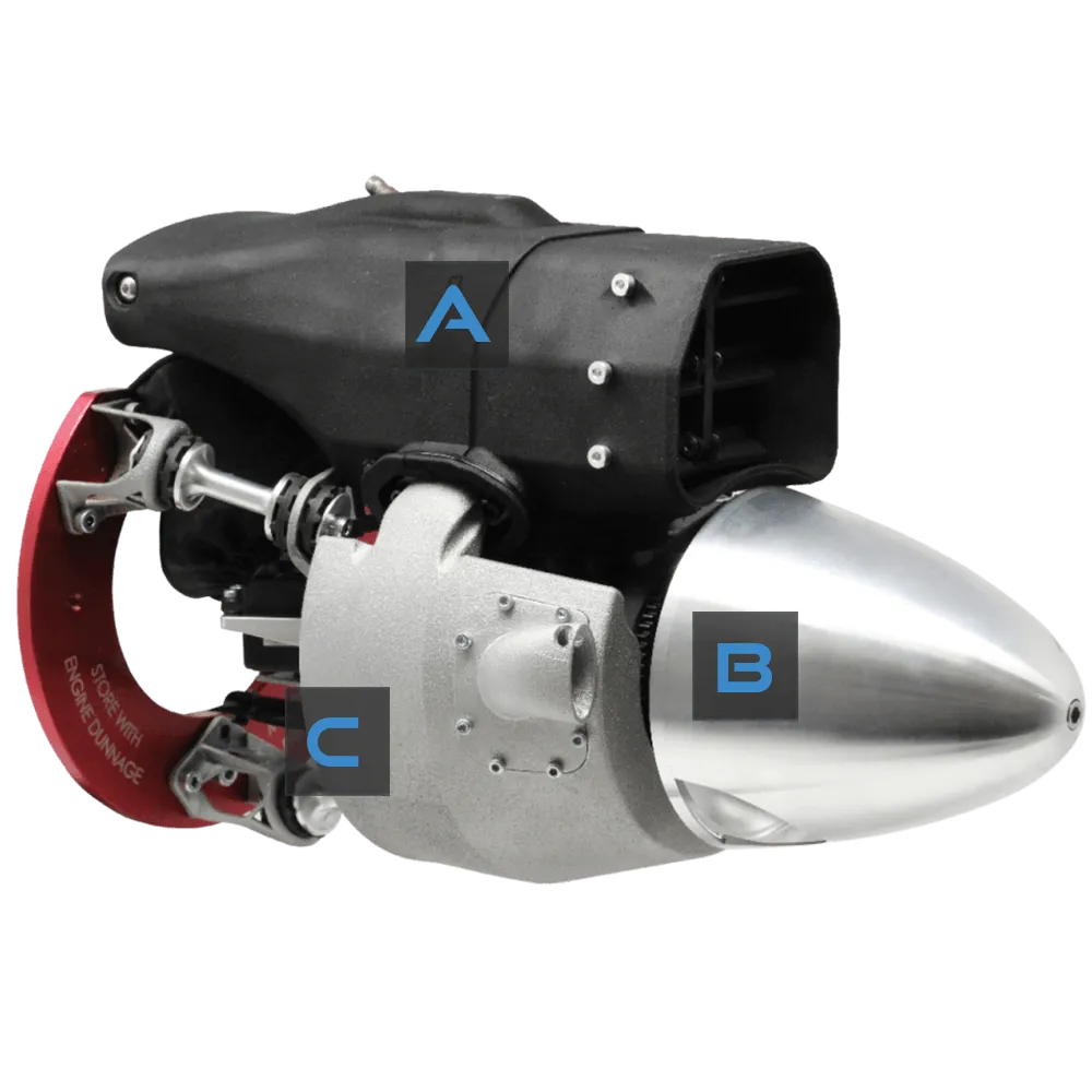 The A33HF’s additively manufactured exhaust system provides an excellent combination of durability, power, and low noise output. It also cowls extremely well for low prop masking and improved aerodynamics.